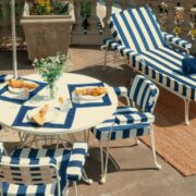Eichholtz is another brand that recently entered the outdoor category in a big way with a few dining and chat set pieces that Marketing Director Alyssa Abrams says helps the company “sell a lifestyle.”