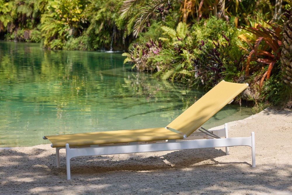 Luma, from the Basque word for feather, is reminiscent of the plumy palm fronds and wild ferns that thrive in warm climates. This elegant chaise lounge exemplifies the perfect balance between visual lightness and structural resilience. Much like a fern flexing in the wind, Luma’s airy sling appears to gracefully float above its streamlined four-post aluminum frame. It is available in an array of powder-coat finishes and sling fabrics.