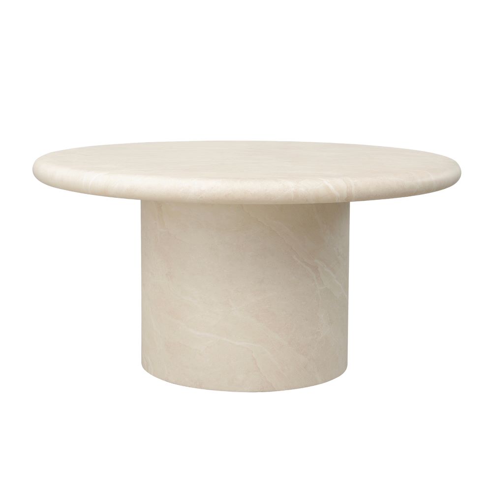 - Travertino Table Series: Rendered in concrete, mimicking natural stone with creamy travertine shades in contemporary pedestal silhouettes, the Travertino Table Series features smooth, rounded aprons. Perfect for indoor and outdoor use, the coffee and end tables can be nested for an interesting, layered look.