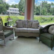 The Berkley Sling Lounge Sofa blends comfort and style with its handcrafted frame that features a carved wood-look design made from durable cast and extruded aluminum. The ergonomic seat and back add support, while the all-weather Sling material ensures long-lasting shape and comfort. Castelle offers a variety of powder-coat finishes and optional artisan-applied antiquing.