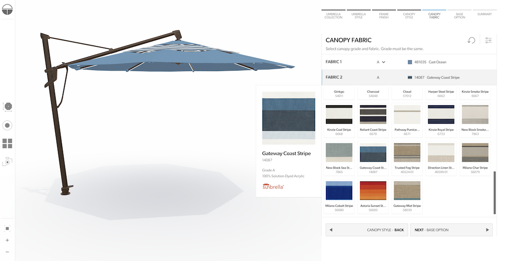 - Immersive 3D interaction: Users can now virtually open, close, rotate and tilt umbrellas with an intuitive 3D interface, providing a realistic preview of umbrella features and their chosen design.