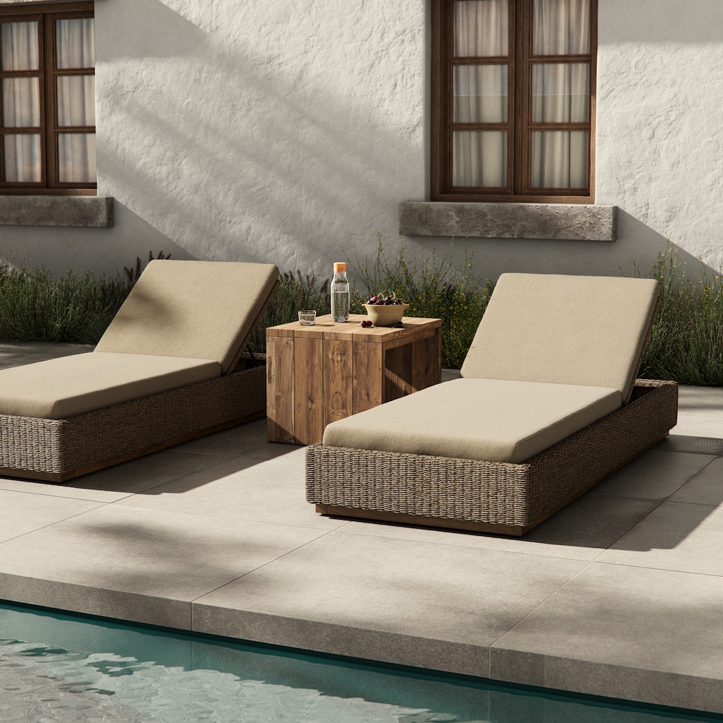 Each piece in Four Hands’ hospitality collection undergoes comprehensive testing and is backed by a two-year warranty. Outdoor pieces include the Granger sofa, Jackson metal swivel chair, Lorelai chaise, Miller woven dining chair, Otero round dining table in matte stone, Rye nesting coffee tables in aged white concrete and the Tahana dining armchair.