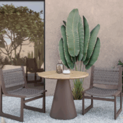 Janus et Cie’s Carefree side table is made with cast stone powder with a resin binder, which gives each piece its own distinctive look.