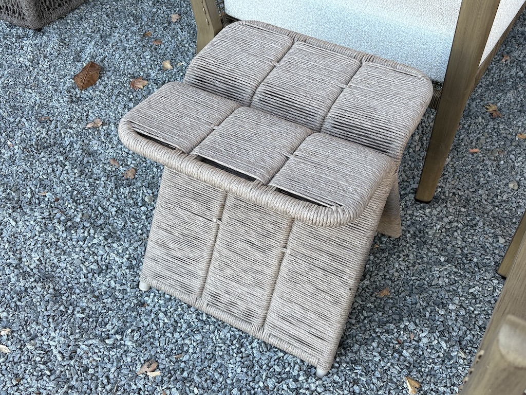 A rope weave in a neutral shade give this side table from Azzurro Living a natural feel.