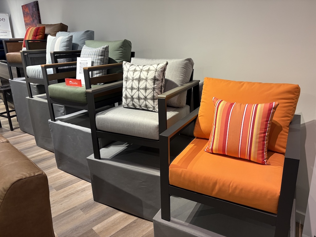 To cater to that audience, NorthCape highlighted its custom capabilities, showing the range of frames, arm styles, cushions and other components that can be tailored. And Murray said that the company has moved much of its production to Vietnam and India — which are subject to lower tariff rates — making customization more economical.