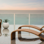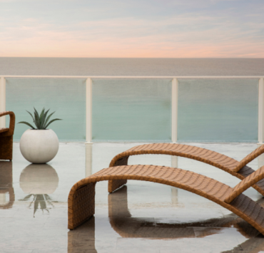 The Ciela features modern, low-profile frames with woven details and an Italian gray sintered stone tabletop. The Leni is Armen Living’s take on luxury outdoor living, a complete collection for dining and lounge featuring a wrought iron design that pairs with concrete dining and occasional tabletops.