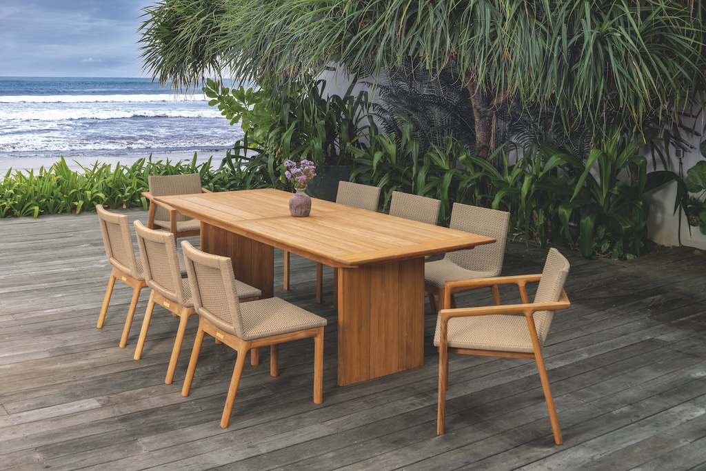 MANASSAS, Va. — Kingsley Bate is introducing two new collections for spring 2026: Biscayne, a modern upholstered-mesh collection designed for everyday outdoor living, and Cortona, a pair of architectural teak dining tables for outdoor entertaining spaces.