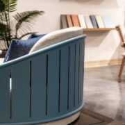 In addition to the new Biscayne and Cortona, the Montauk collection will now be stocked in a new Brushed finish, an unpainted treatment that subtly enhances the distressed teak’s natural texture and depth. The collection includes a sofa, lounge chair, sectional seating and occasional tables.