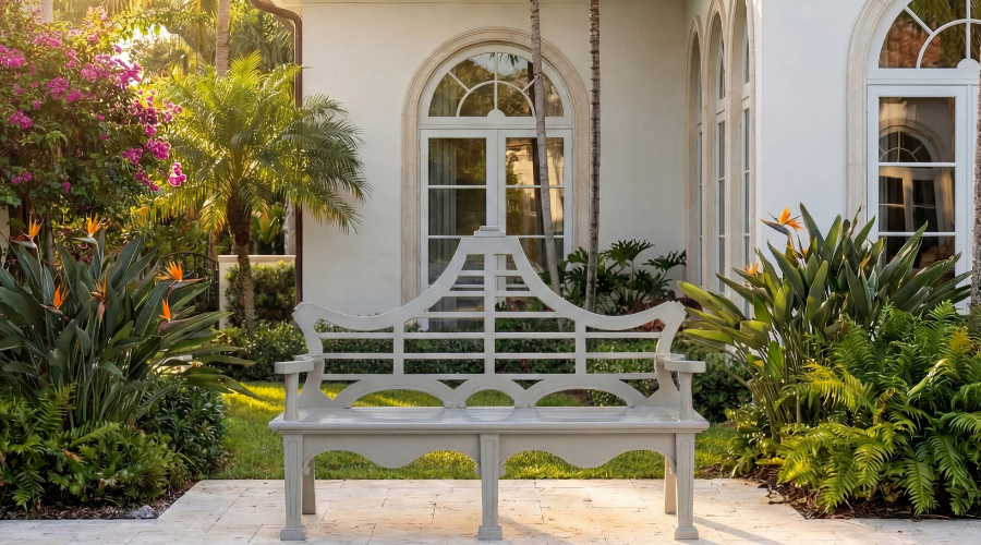 Park Hill Collection’s Bay Lake garden bench in Khaki is a sophisticated accent for outdoor areas. The company is returning to High Point for the first time in several years, bringing market-goers a fresh look at its design direction. Showroom: IH501